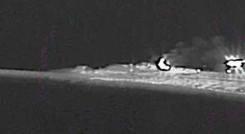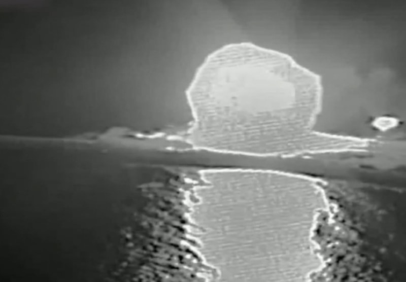 Açıklamada, “İki gün önce İran rejiminin Umman Körfezi’nde 11 gemisi vardı, bugün ise sıfır gemisi var” ifadesi kullanılırken paylaşılan siyah-beyaz videoda bir gemiye füze isabet ettikten sonra göğe alevlerin yükseldiği görüldü.