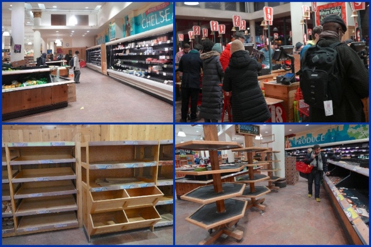 New York ve New Jersey civarındaki market ve süpermarketlerin özellikle su, ekmek ve makarna gibi temel gıda ürünlerinin yer aldığı raflar müşteri akınına uğrarken, alışveriş arabaları ağzına kadar dolduruldu.