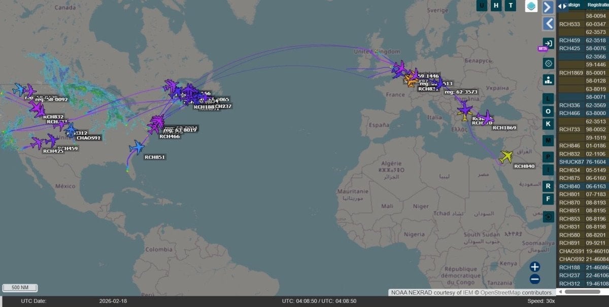 16 Şubat’ta İngiltere’deki RAF Lakenheath’ten 18 adet F-35 uçağının havadan yakıt ikmal tankerleri eşliğinde bölgeye doğru yola çıktığı görüldü.