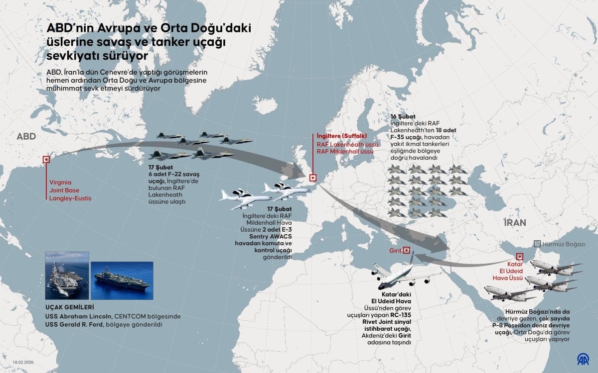 Bu kapsamda ABD’nin Avrupa ve Orta Doğu’daki üslerine yoğun askeri sevkiyatı son 48 saatte dikkat çekici seviyeye ulaştı.
