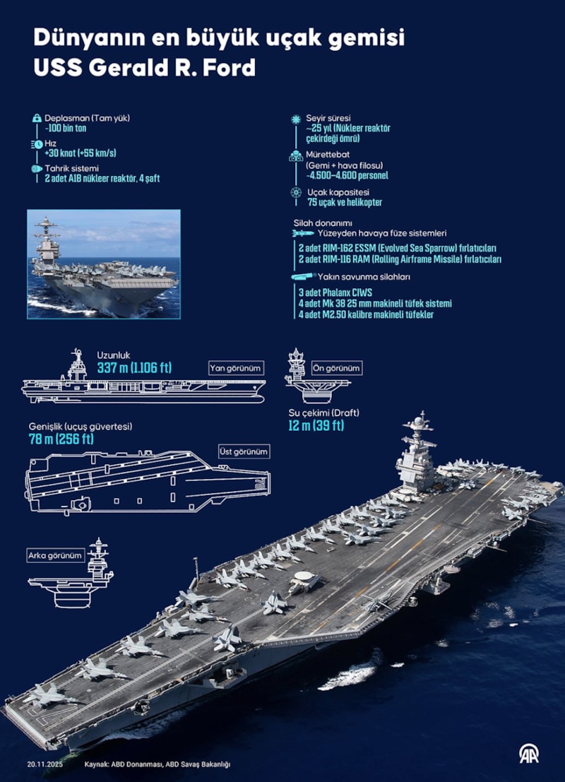 USS Gerald R. Ford gemisi Kızıldeniz’de USS Abraham Lincoln uçak gemisi ise Umman Denizi’nde faaliyet gösteriyor.