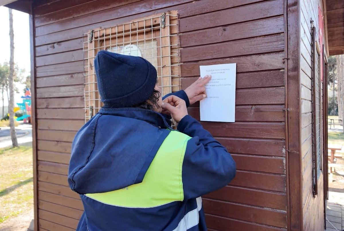 Cihazı kontrol eden Almaz, telefonun şarjının bittiğini fark edince sahibine ulaşabilmek için parkın çeşitli noktalarına, telefon bulduğunu ve sahibini aradığını belirten A4 kağıdına basılı yazılar astı.