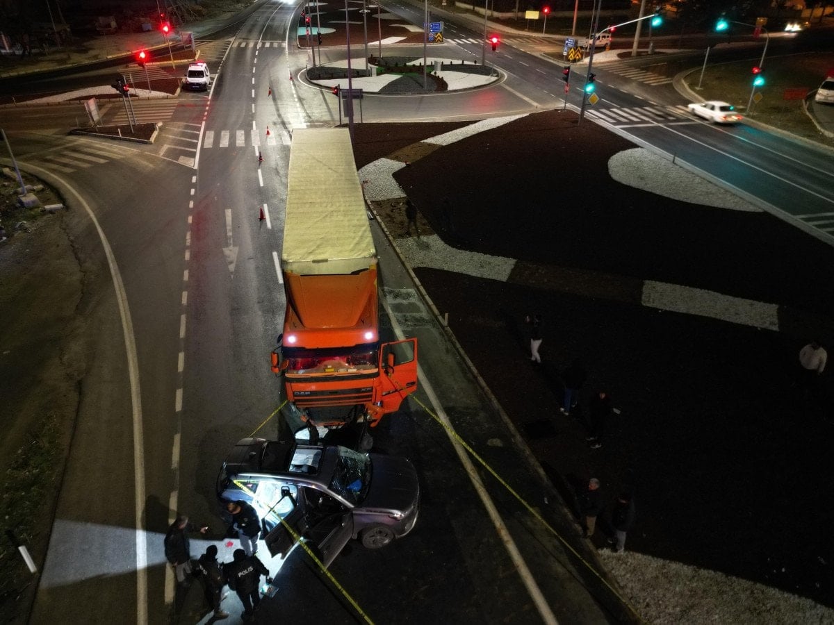 Bolvadin ilçesi Çobanlar Kavşağında R.P., yönetimindeki tır henüz belirlenemeyen bir sebepten ötürü kavşakta M.T., idaresindeki otomobille çarpıştı.