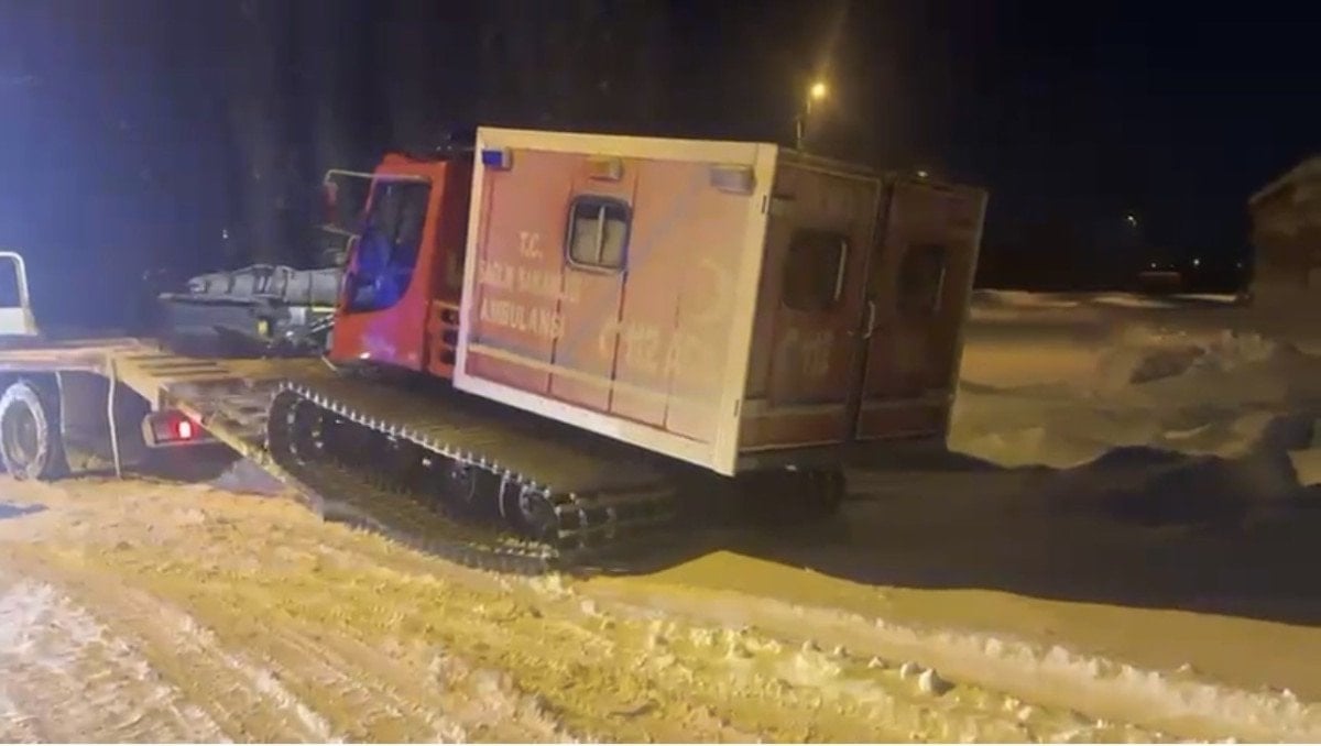 Yoğun kar yağışı ve tipi nedeniyle köy yolunun kapalı olması üzerine bölgeye paletli ambulans sevk edildi.