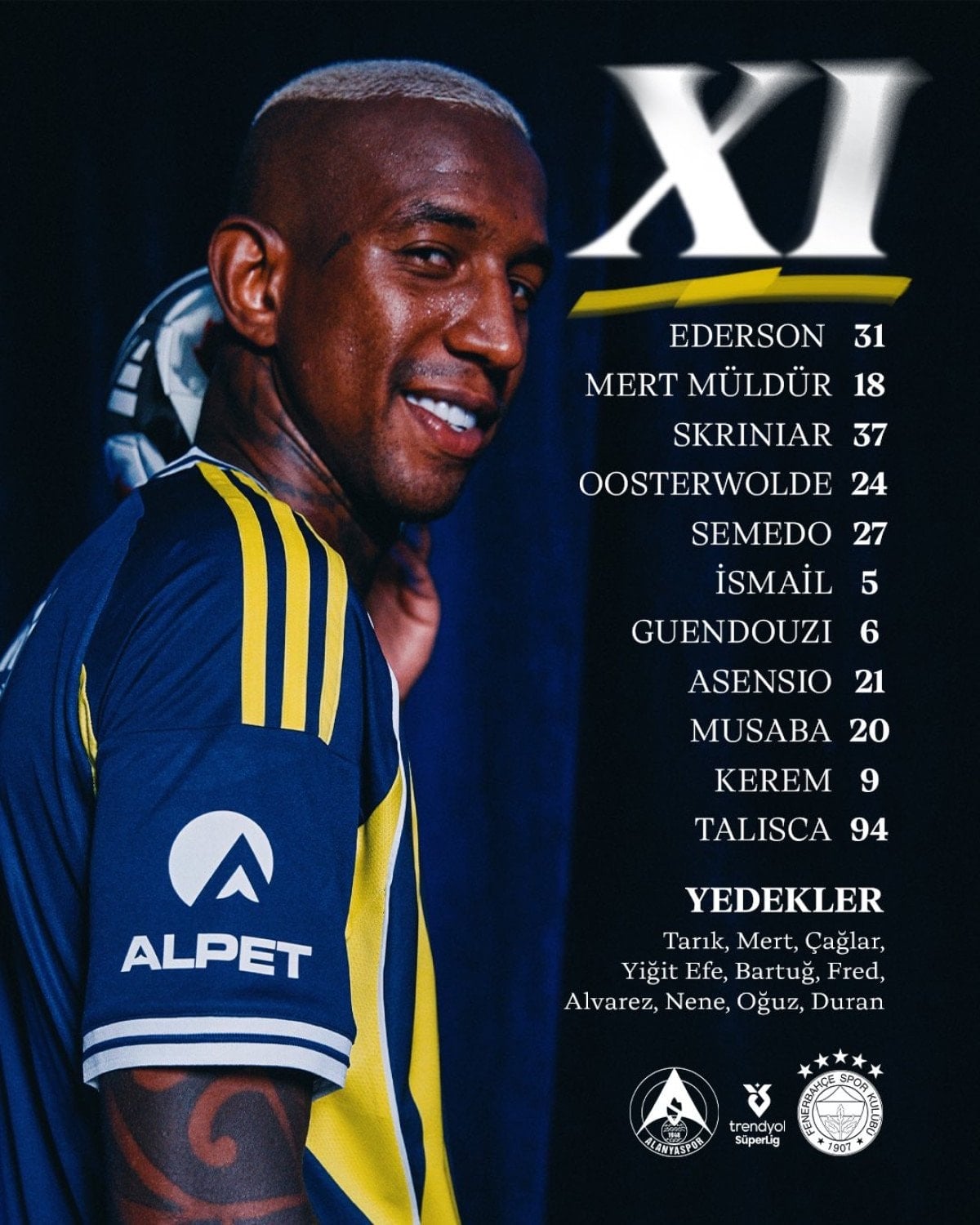 Alanyaspor – Fenerbahçe maçının ilk 11’leri
