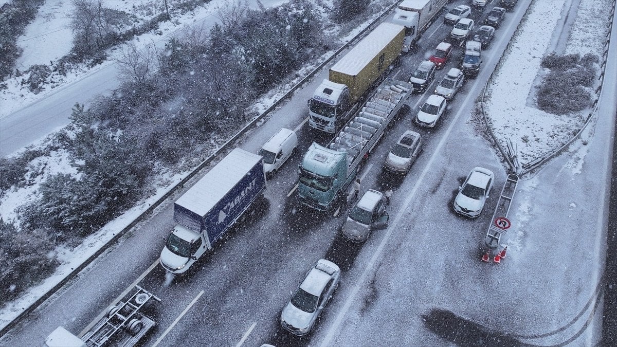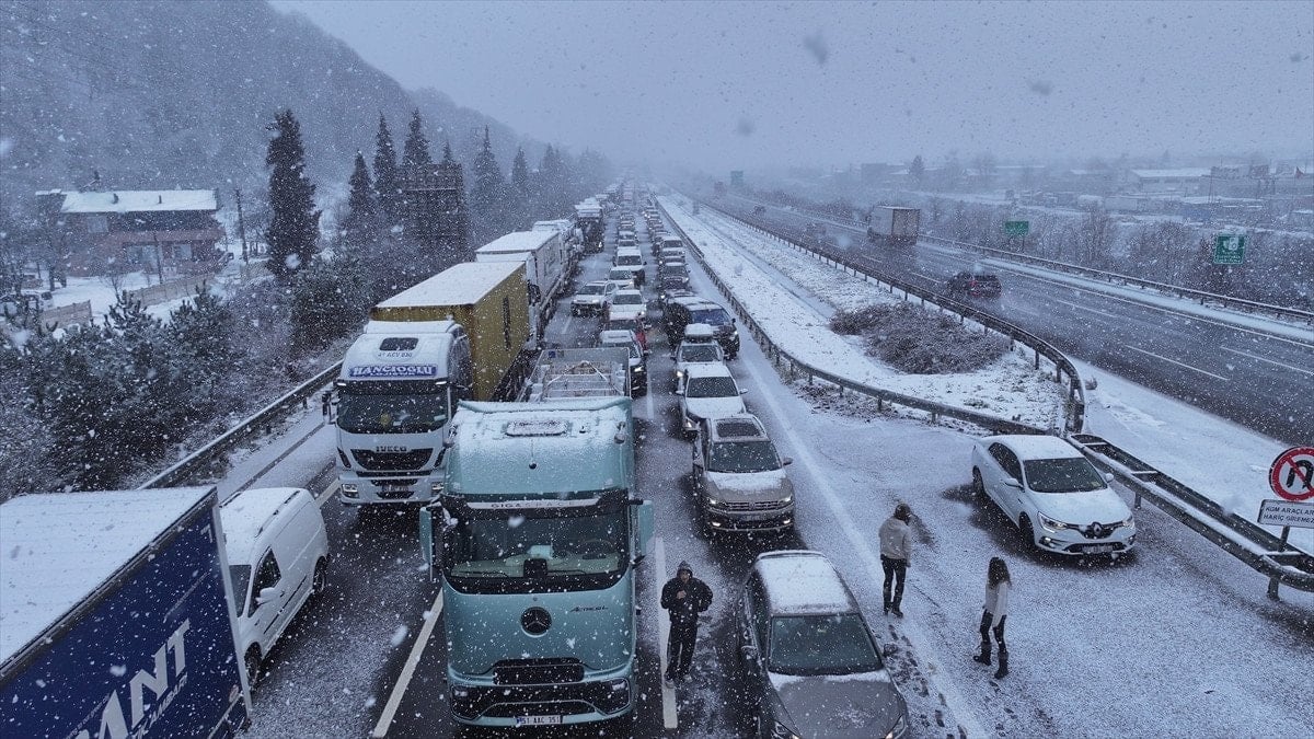 Anadolu Otoyolu’nda Ankara yönünde seyir halinde olan bir tır, Bolu Dağı Tüneli mevkiinde kar yağışı nedeniyle kayganlaşan yolda kontrolden çıkarak makasladı. Kaza sonrası yol tamamen trafiğe kapandı.