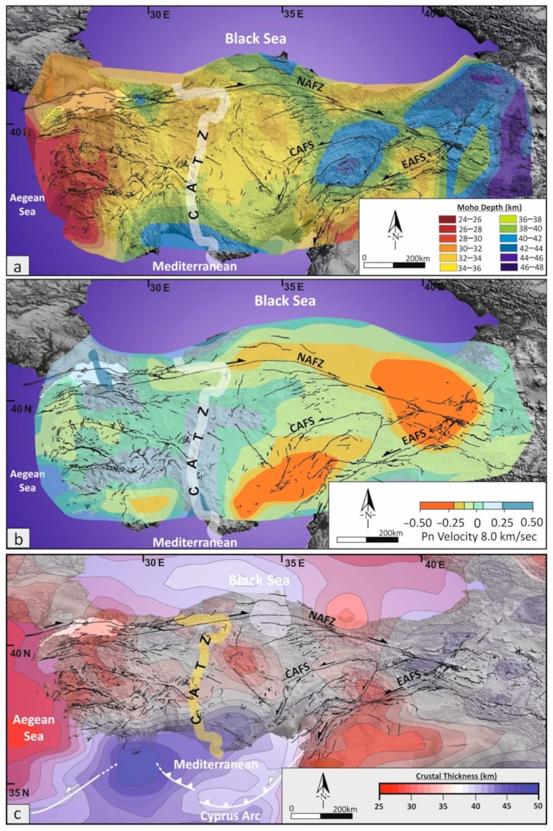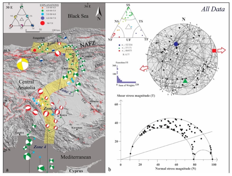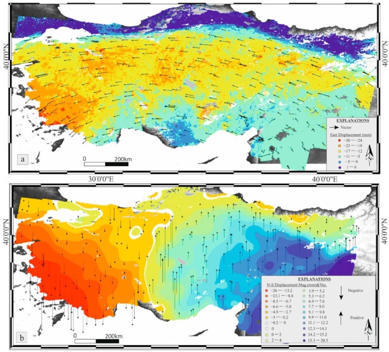 “Delineating the Central Anatolia Transition Zone (CATZ): Constraints from Integrated Geodetic (GNSS/InSAR) and Seismic Data” başlıklı makale, Anadolu’nun Ankara’nın doğusu ve batısının zıt yönlerde hareket ettiğini ve Karadeniz Ereğli’den Antalya’ya uzanan bir gerinim zonu bulunduğunu ortaya koyuyor.