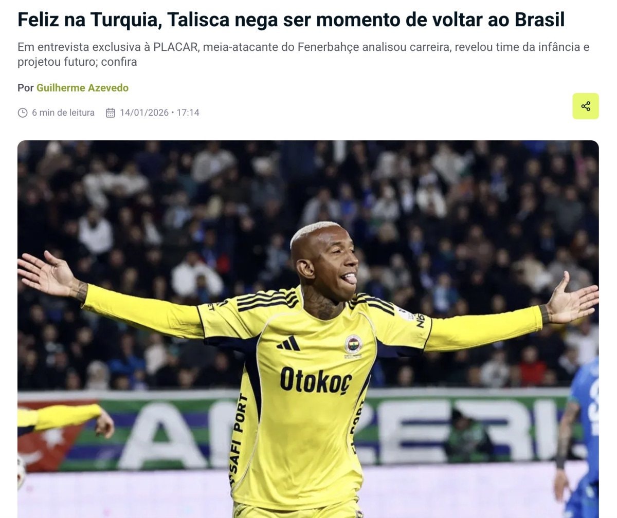 Fenerbahçe’nin Brezilyalı yıldızı Anderson Talisca, ülkesinin basınından Placar’a açıklamalarda bulundu.