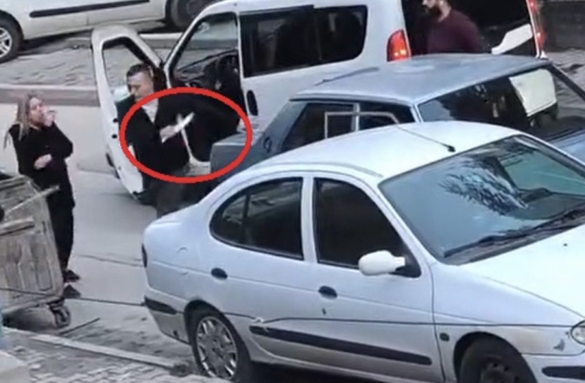 Çevredekiler tarafından cep telefonuyla görüntülenen olayda, hafif ticari araç sürücüsünün de çakıyla otomobilden inen 2 kişiye karşı koymaya çalıştığı görüldü.
