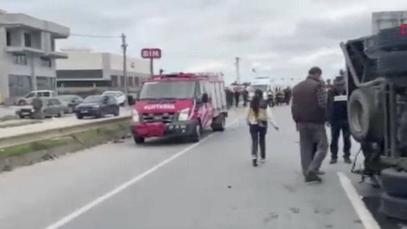 Ardından midibüs, yol kenarındaki çelik bariyerlere çarpıp devrildi.