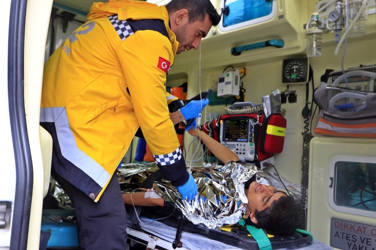 Bölgede hazır bekleyen sağlık ekiplerince kontrolleri yapılan genç, ardından tedbir amaçlı hastaneye götürüldü.