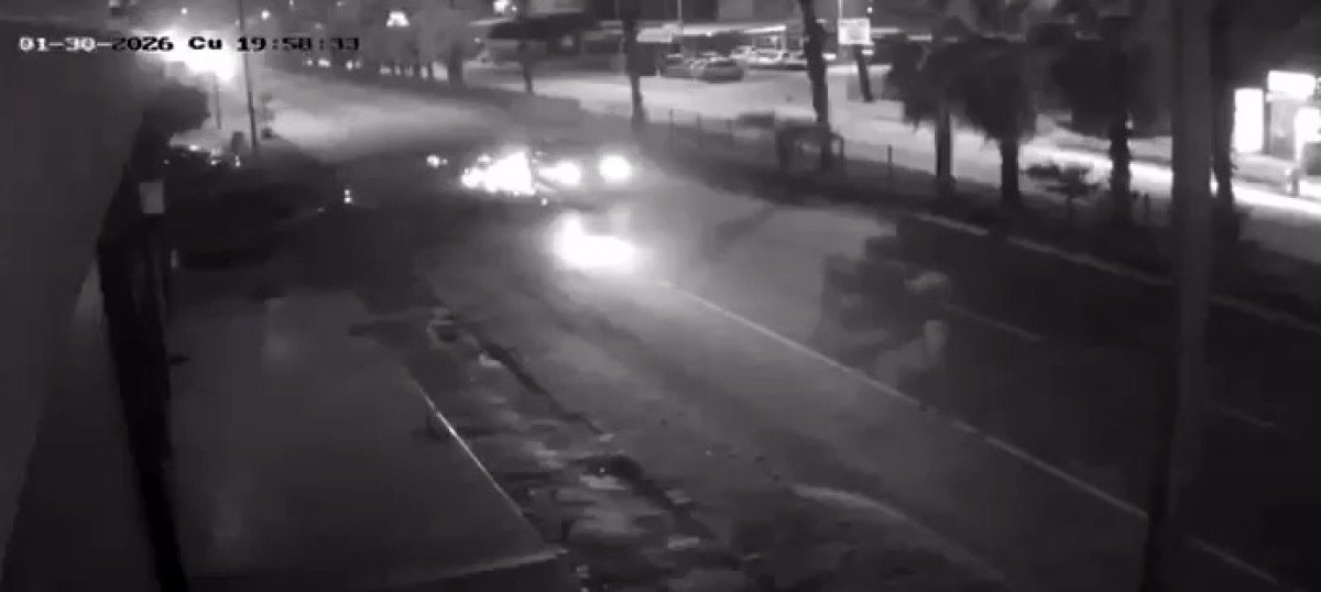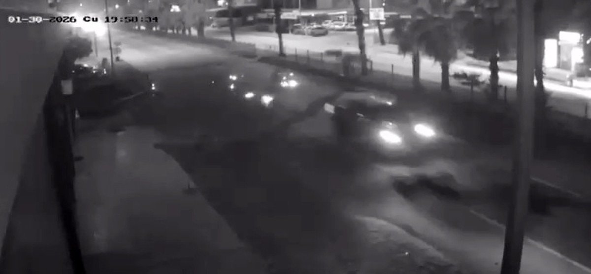 Refüjdeki geçiş noktasından skuter ile yolun karşısına geçmek için hareket eden Sinan Abdulkadir İhsan’a gelen kamyonetin çarpması görüntüde yer aldı.