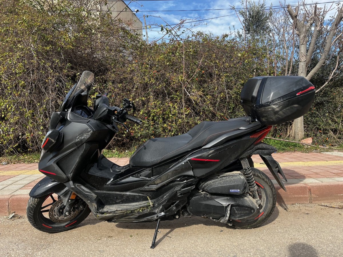 Savrulan motosiklet refüje çarparak durabildi.