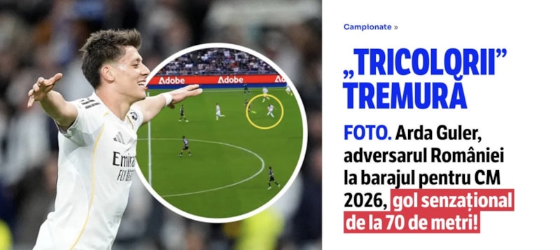 Haberde “2026 Dünya Kupası play-off maçında Romanya’nın rakibi Türk Milli Takımı’nın yıldızı Arda Güler’den yetmiş metrelik muhteşem bir gol” değerlendirmesi yapıldı.