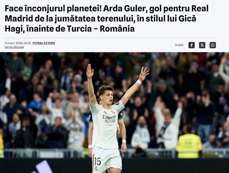 “Arda’nın golü, 1992’de yine Real Madrid formasıyla Hagi’nin attığı muhteşem golü akıllara getirdi. Mircea Lucescu, Türkiye-Romanya düellosu öncesinde endişelenebilir çünkü Türk yıldızlar kulüp takımlarında çok iyi bir formdalar.”