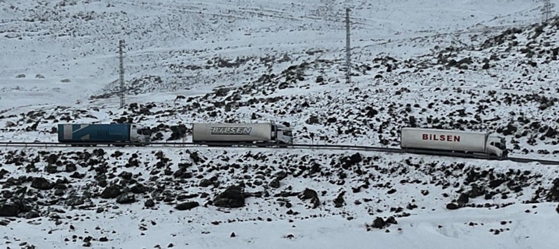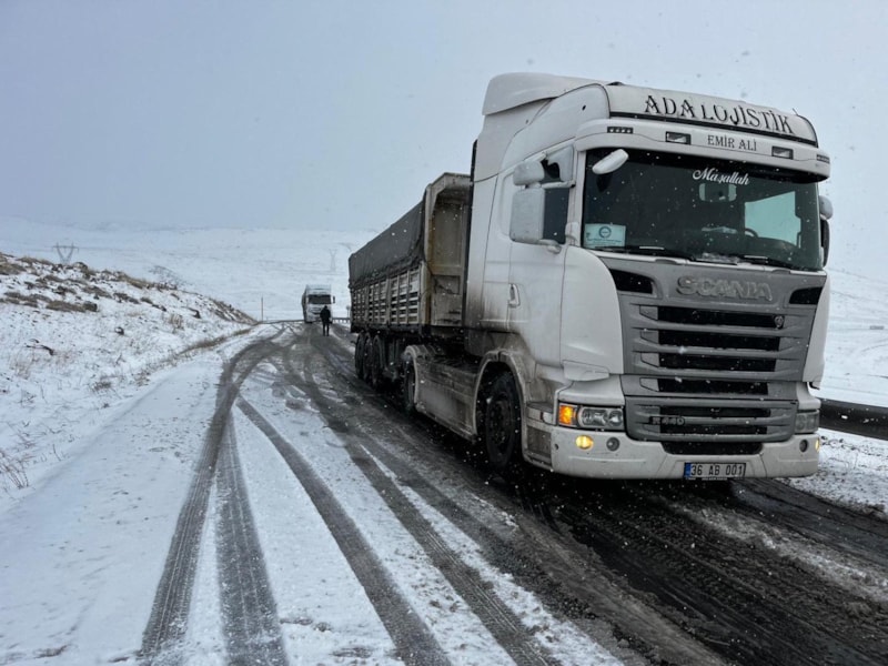 Ardahan’da buz tutan rampada tır şoförlerinin çilesi