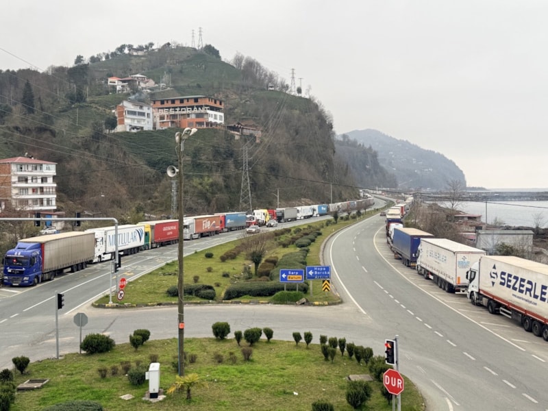 Uluslararası taşımacılık yapılan tırlar, Türkiye tarafında Karadeniz Sahil Yolu boyunca uzun kuyruk oluşturdu. Kuyruk, aralıklarla 29 kilometre uzaklıktaki Kemalpaşa ve Hopa ilçelerini geçerek Arhavi ilçesine kadar uzadı.