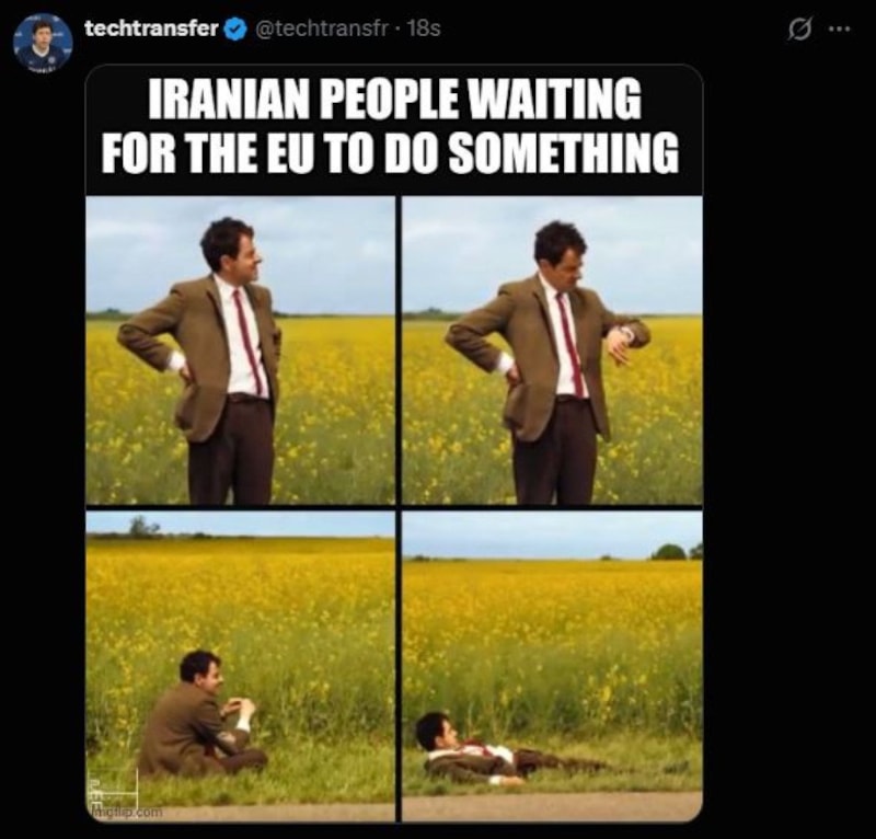 Saldırıların hemen ardından Avrupa Birliği (AB) kanadından gelen nispeten geç ve “gelişmeleri endişeyle izliyoruz” içerikli mesajlar, özellikle hafta sonuna denk gelmesi nedeniyle kullanıcılar tarafından alaycı paylaşımlarla gündeme taşındı.