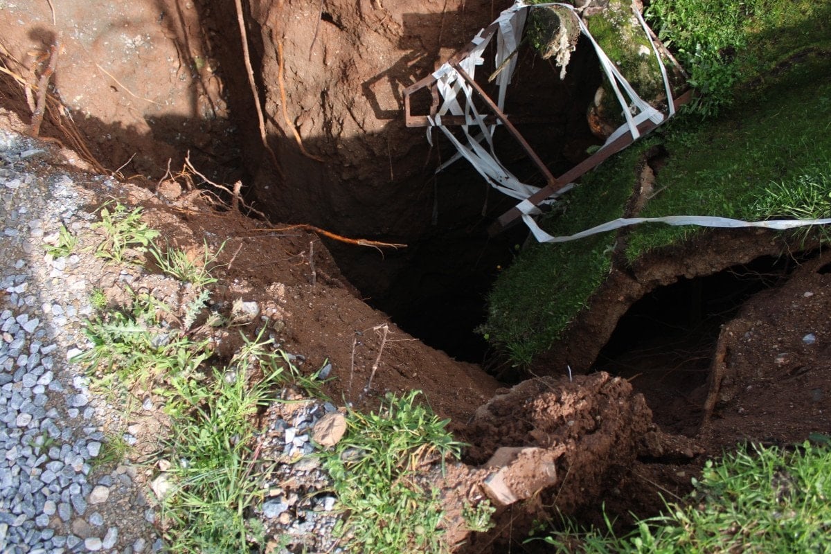 Aydın’da yol çöktü, 20 metrelik obruk oluştu