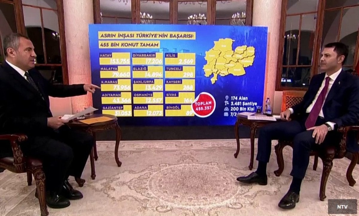 Çevre, Şehircilik ve İklim Değişikliği Bakanı Murat Kurum, NTV Ankara Temsilcisi Ahmet Ergen’in sorularını yanıtladı. TOKİ tarafından yürütülen 500 bin sosyal konut projesine ilişkin önemli bilgiler paylaşan Kurum, kura sürecinin deprem bölgesinden başlatılacağını söyledi.