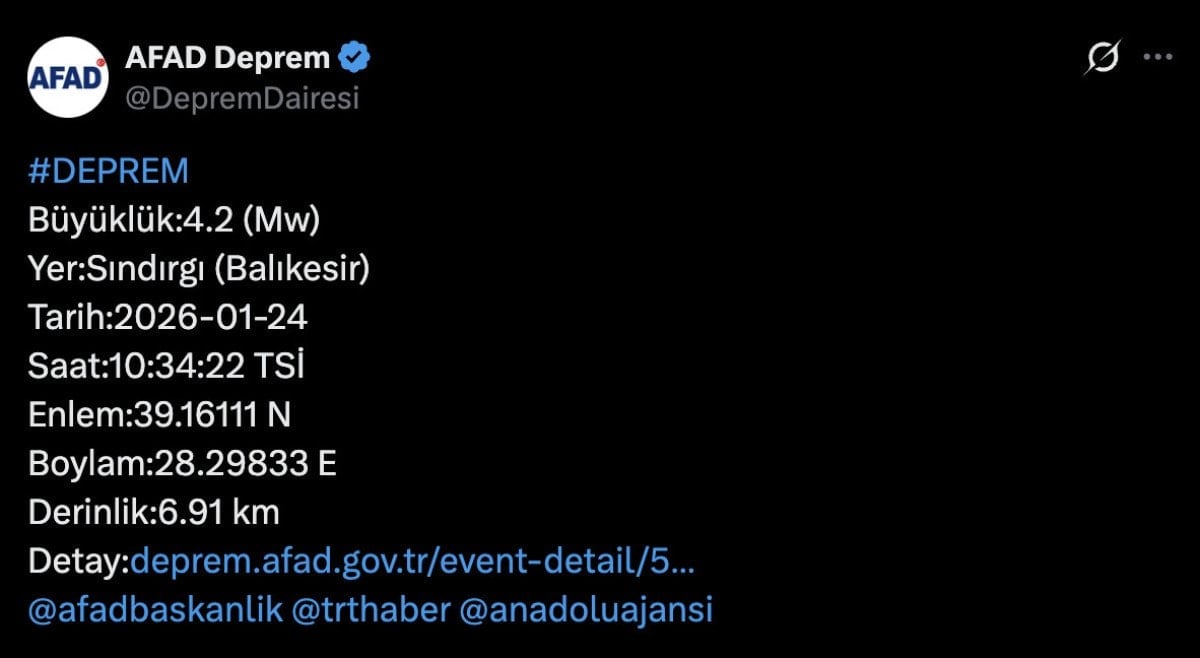Sındırgı ilçesinde gece 00:24’te 5.1 büyüklüğünde deprem meydana geldi.