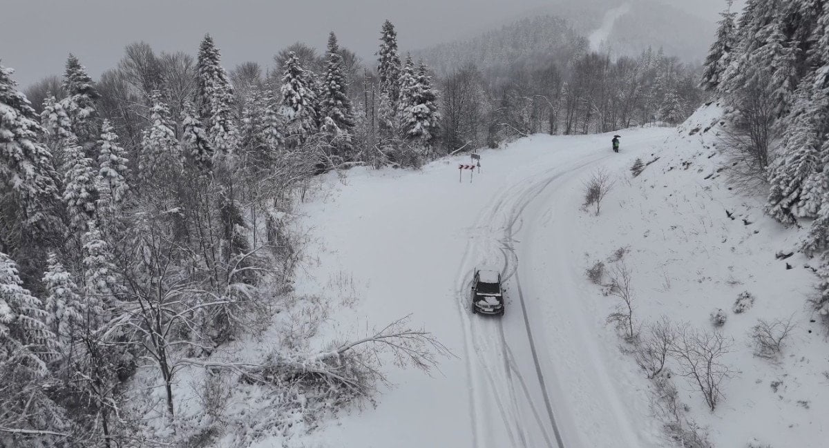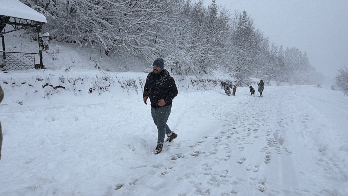 Bölgedeki kar ve sis manzarası, dronla görüntülendi. Soğucaksu Geçidi’ne çocuklarıyla birlikte gelenler beyaz örtünün keyfini doyasıya çıkardı.