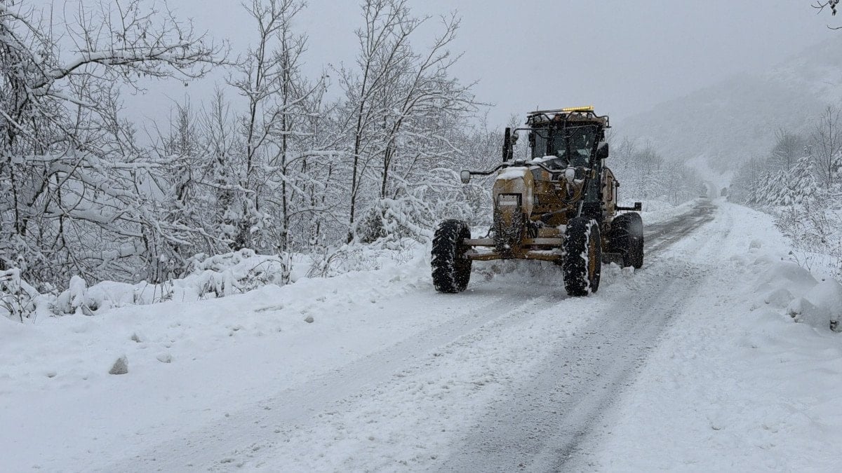 Karayolları ekipleri kar küreme çalışması yaparak yolu ulaşıma açık tuttu.