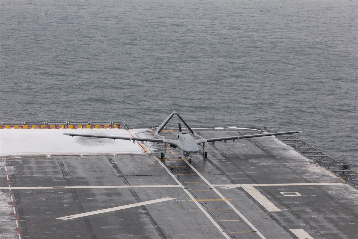 Şiddetli rüzgarın deniz üzerinde yarattığı türbülanslı ortama rağmen kararlı uçuş karakteristiğini koruyan milli SİHA, uçuş görevini başarıyla tamamlayarak şiddetli soğuk nedeniyle buz tutan pisti temizlenen TCG ANADOLU’ya otonom iniş gerçekleştirdi.