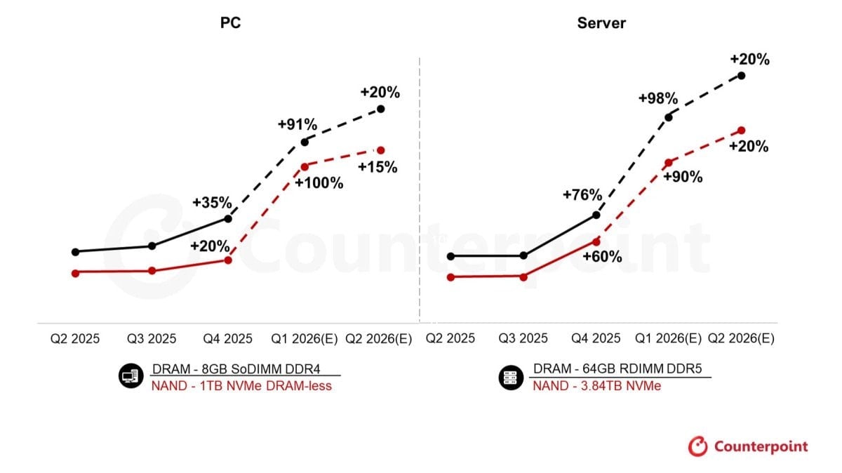 PC ve sunucu pazarlarını derinden etkileyen büyük kıtlık nedeniyle bellek ve NAND fiyatlarında tarihi bir artış gözlemlendi.
