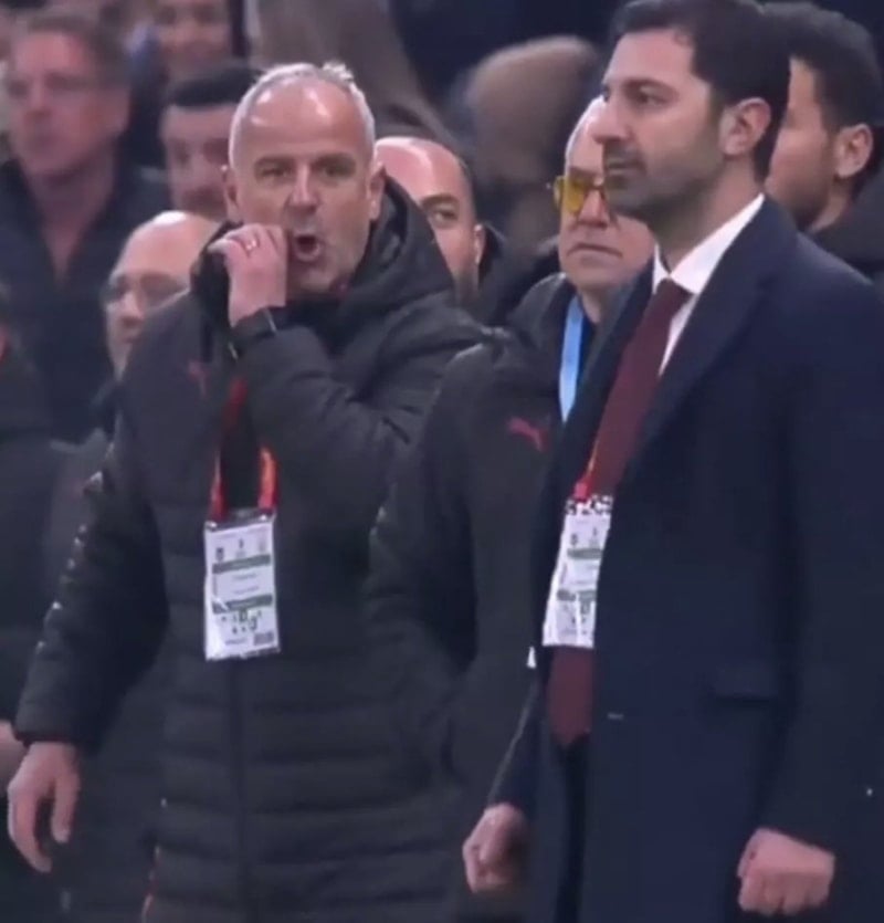 Yayıncı kuruluş kameralarına yansıyan görüntülerde; Galatasaray yedek kulübesinde kaleci antrenörü Fadıl Koşutan’ın, Futbol A Takım İdari Direktörü Uğur Yıldız’a ‘Sarı kartı bana göster’ şeklinde işaretler yaptığı görüldü.