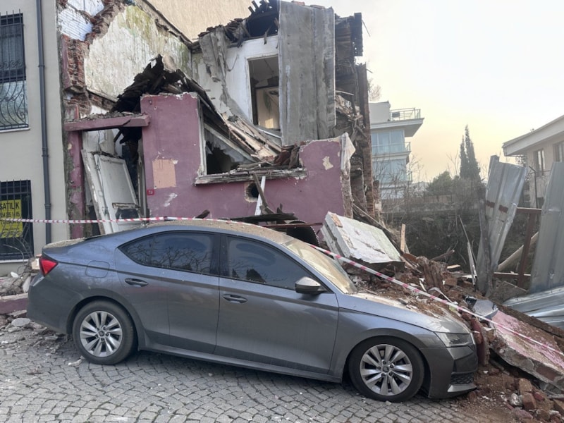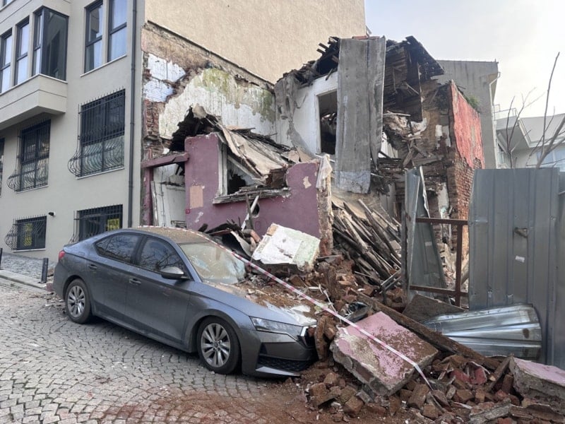 İstanbul’un Beşiktaş ilçesi Ortaköy Mahallesi Mandıra Sokak’ta, sabah saat 06.30 sıralarında uzun süredir kullanılmayan iki katlı bir metruk binanın bir bölümü henüz bilinmeyen nedenle çöktü. Çökme sırasında binadan kopan parçalar, sokakta park halindeki bir otomobilin üzerine düştü.
