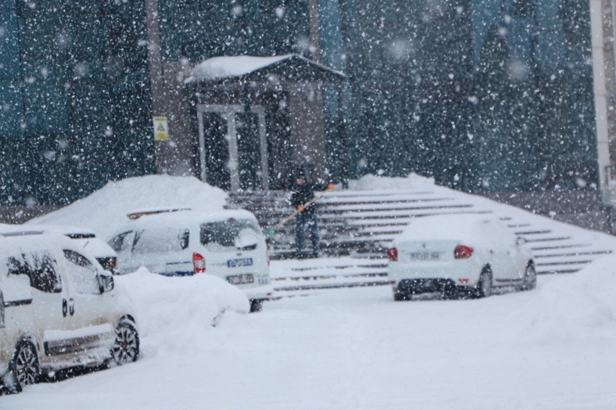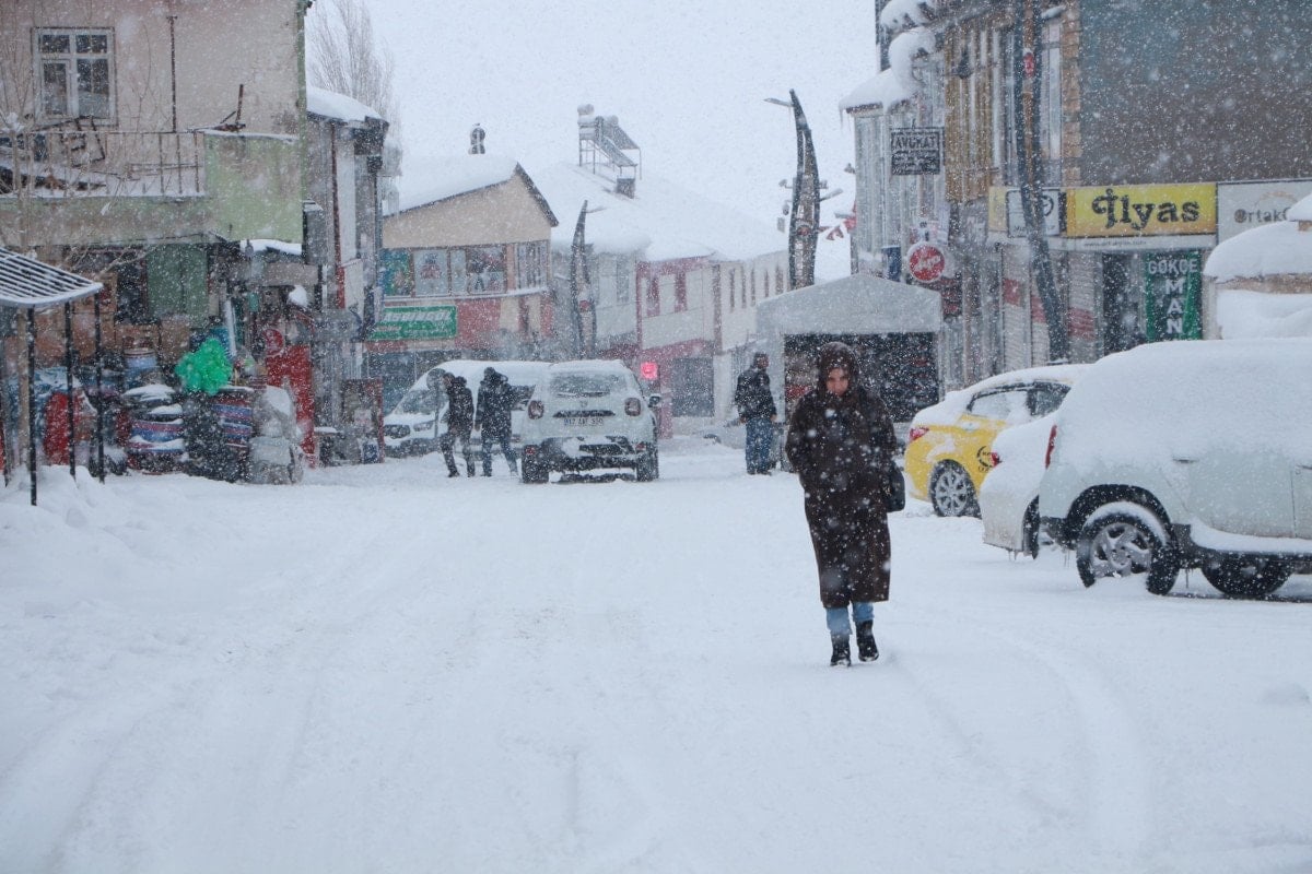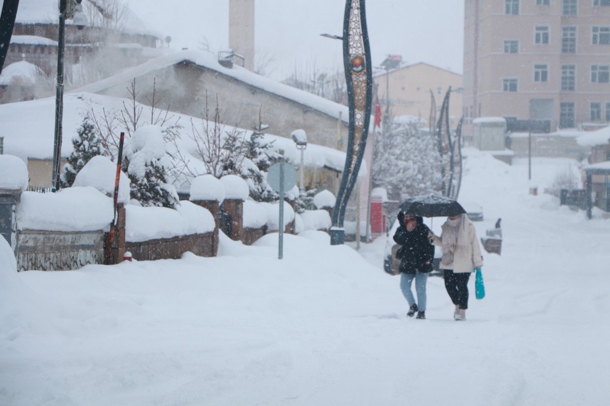Yağışla birlikte 30 köy yolu, ulaşıma kapandı. İlçe merkezi beyaza bürünürken, kar kalınlığı yer yer yarım metreyi geçti.