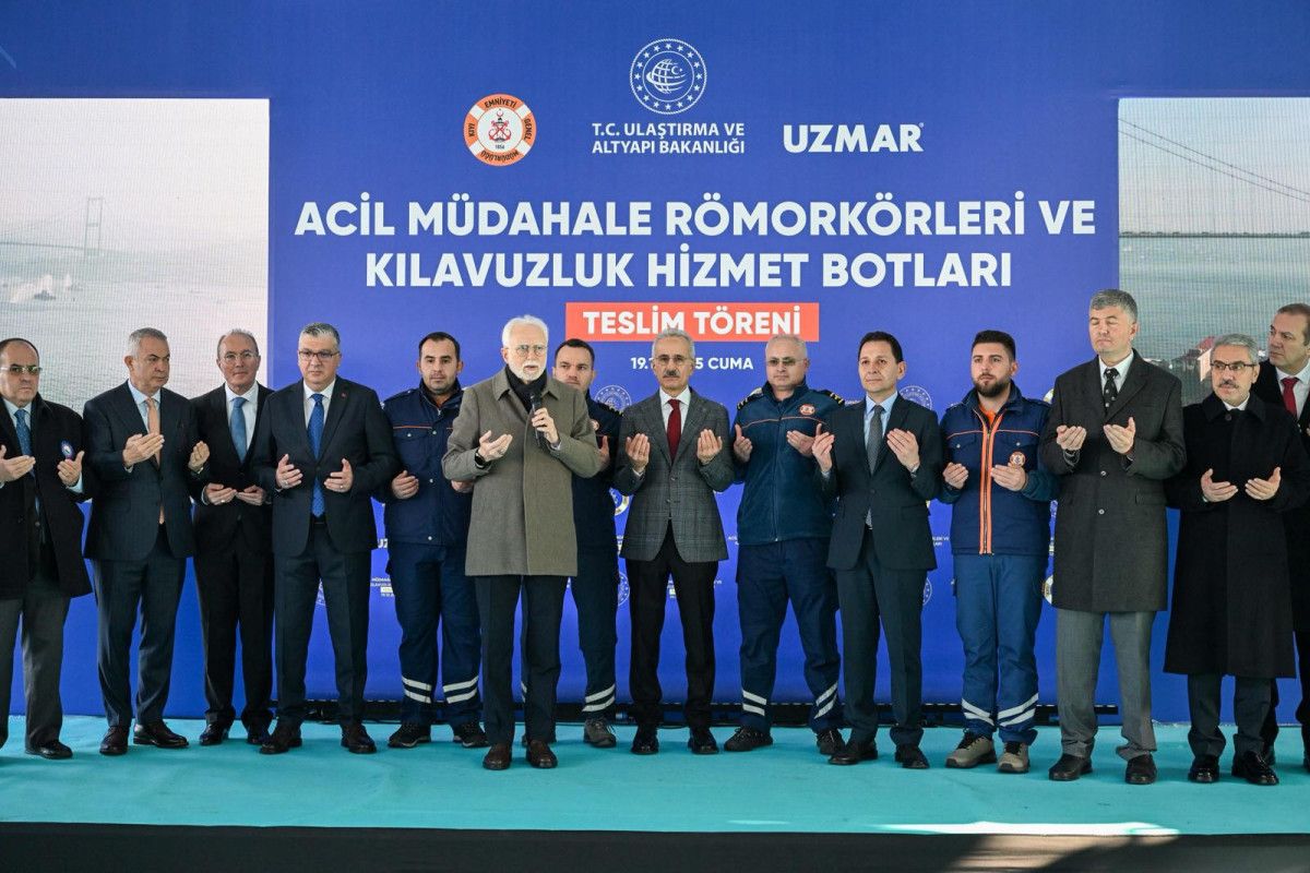 Ulaştırma ve Altyapı Bakanı Abdulkadir Uraloğlu, Kıyı Emniyeti Genel Müdürlüğüne Acil Müdahale Römorkörleri ve Kılavuzluk Hizmet Botları Teslim Töreni’nde konuştu. Bakan Uraloğlu, 2 Acil Müdahale Römorkörü ile 6 Kılavuzluk Hizmet Botu’nu Kıyı Emniyeti Genel Müdürlüğü’nün güçlü filosuna katmaktan duyduğu memnuniyeti dile getirdi.