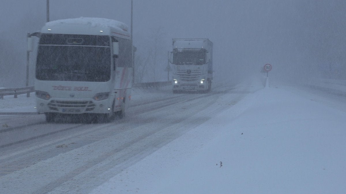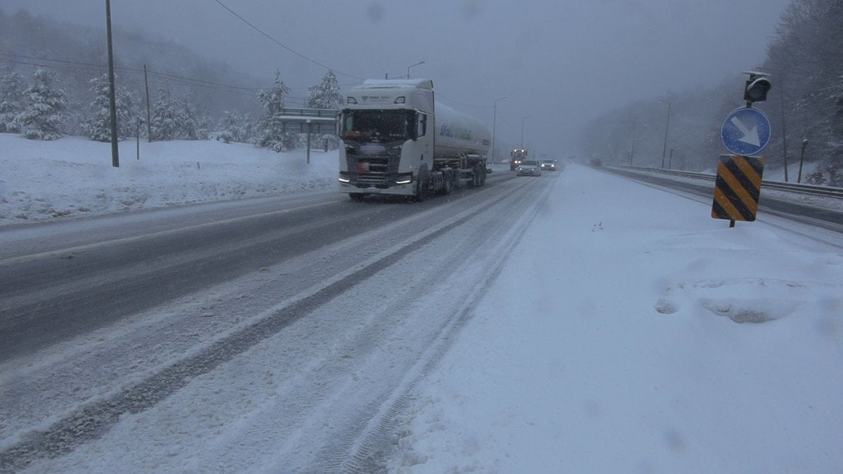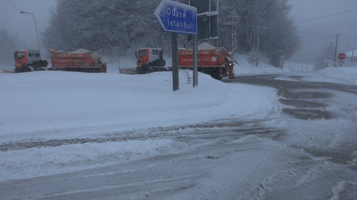 Karayolları ekipleri rampaların ve virajların bulunduğu Bolu Dağı geçişini Düzce tarafından kar küreme çalışmalarının yapılabilmesi için ağır tonajlı araçların geçişine kapattı.