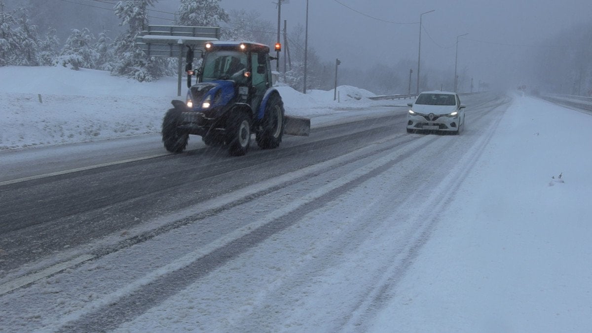 Kar yağışının başlamasıyla birlikte Karayolları ekipleri yol güzergahları üzerinde kar küreme ve tuzlama çalışması yaptı.