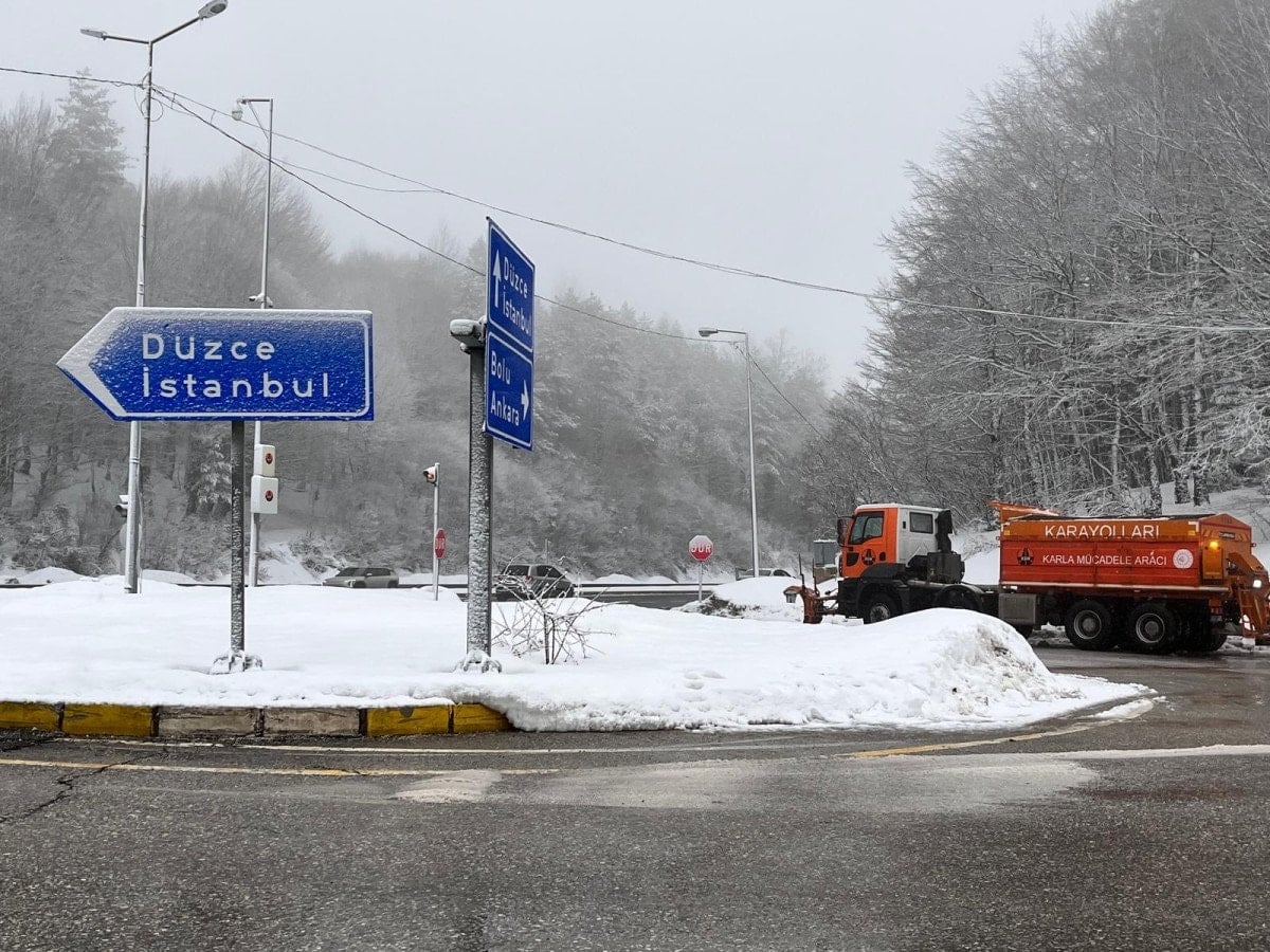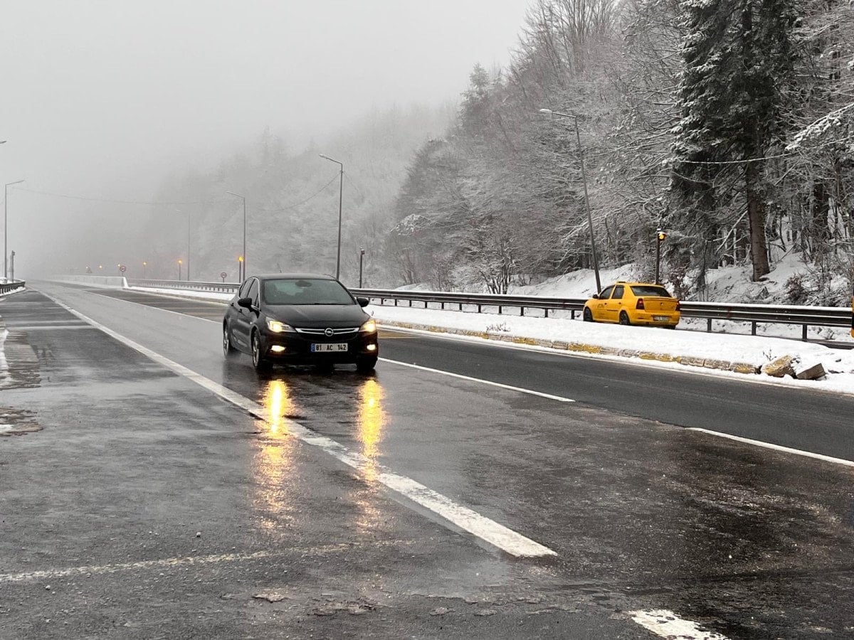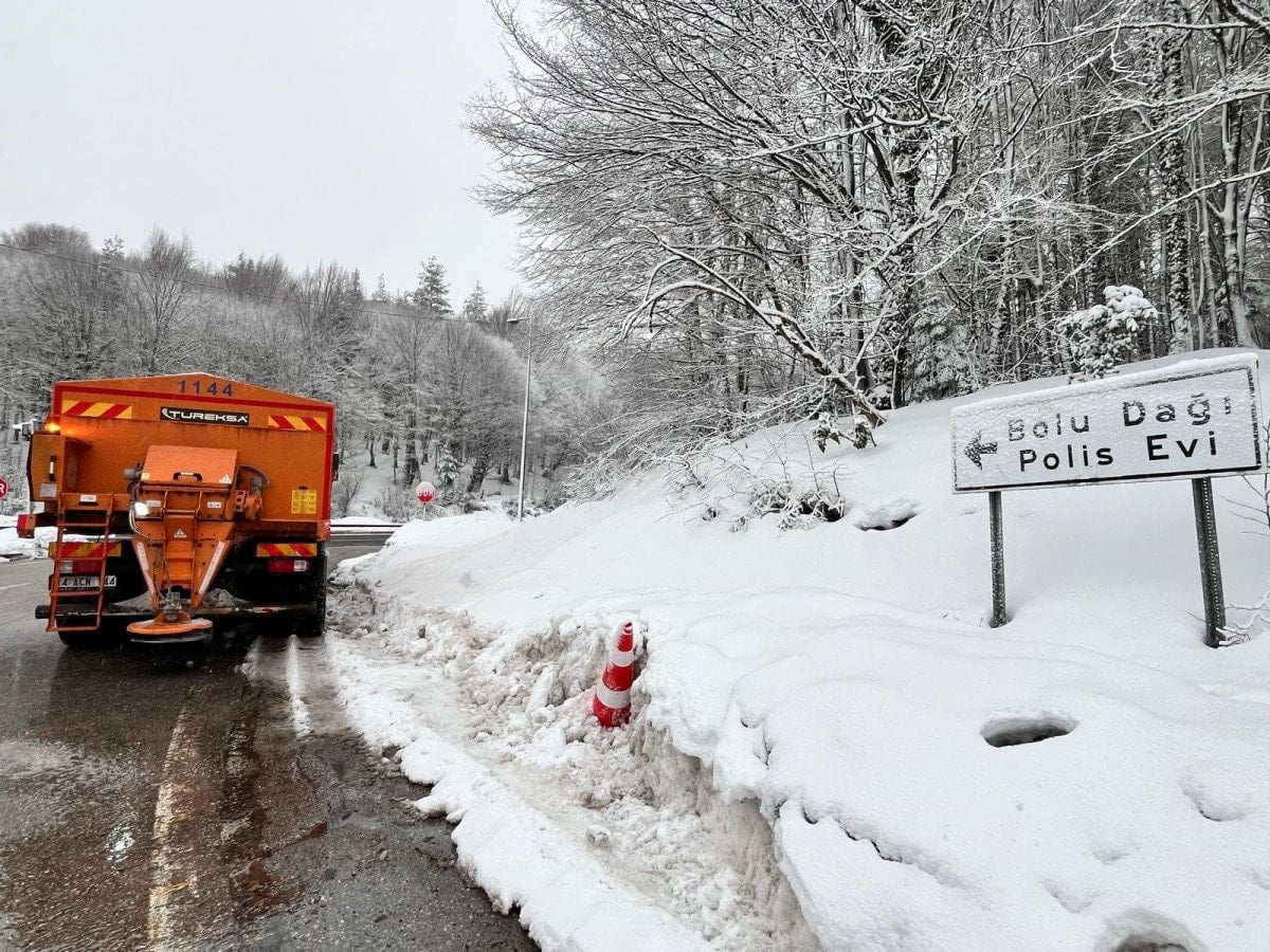 Bolu Dağı’nın D-100 kara yolu geçişinde gece kar yağışı aralıklarla etkili olurken, sabah saatlerinde durdu.