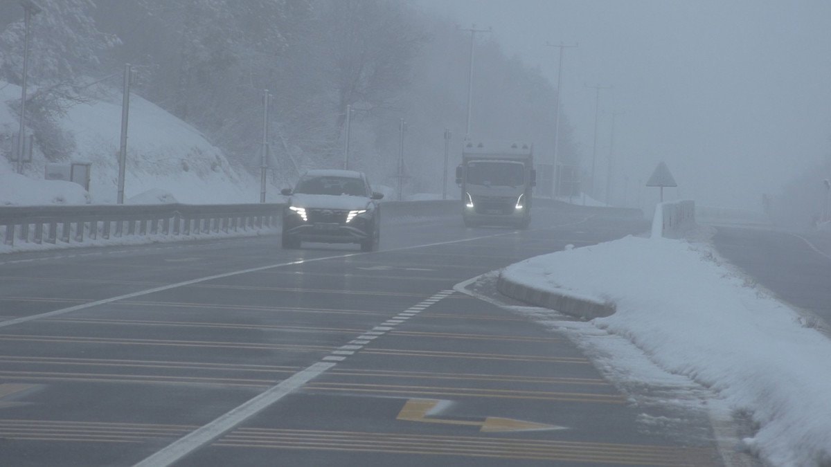 Bolu Dağı’nın Karanlıkdere ve Seymenler mevkilerinde etkili olan sis nedeniyle görüş mesafesi, düşmeye başladı.