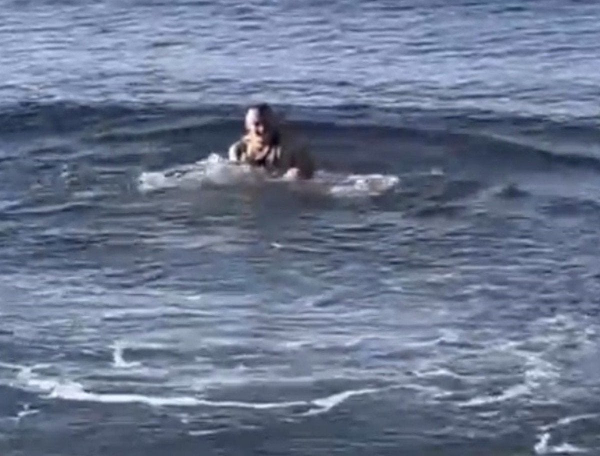 Karla kaplı sahilde mayo ile denize giren vatandaşlar, o anları cep telefonlarıyla kayda aldı.