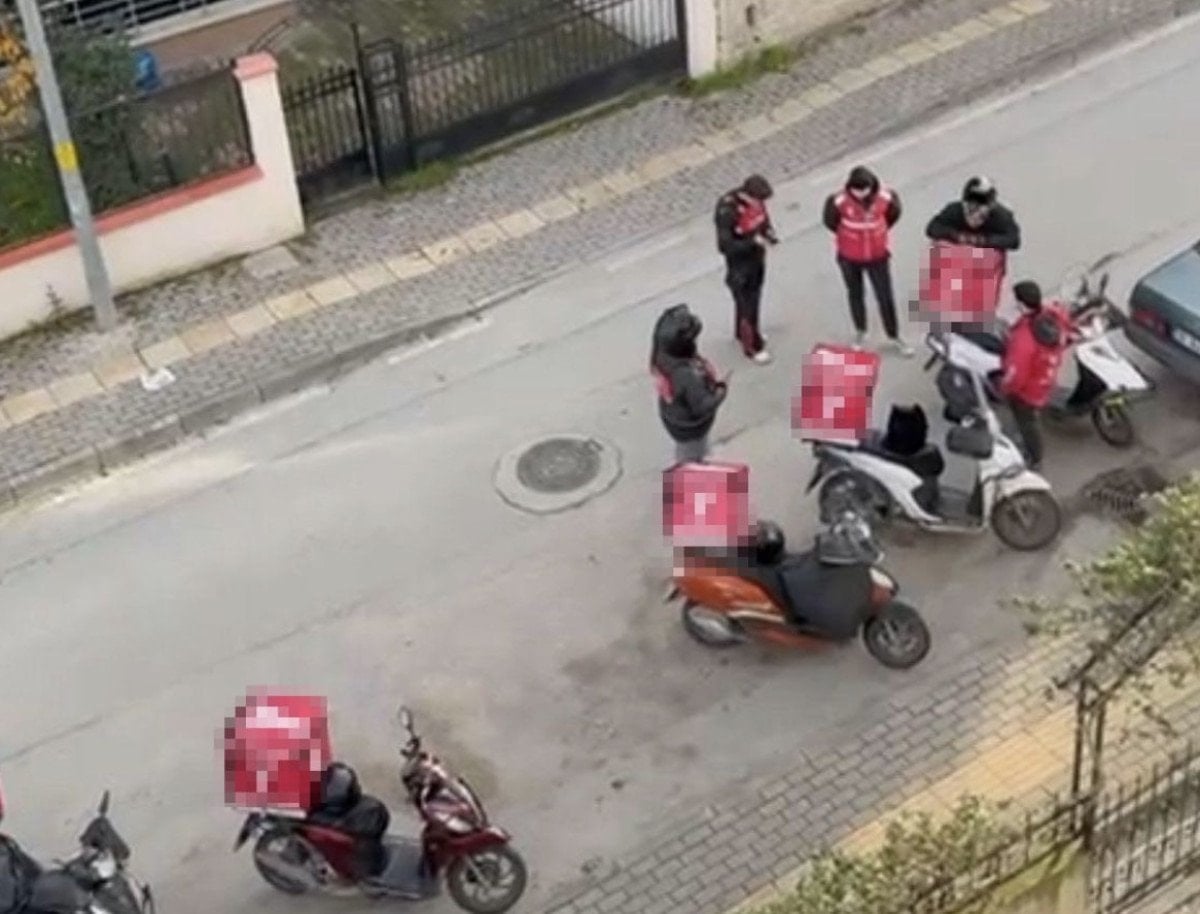 Yalçuva, binanın önünde yan yana sıralanan motokuryeleri, cep telefonu kamerasıyla da görüntüledi.