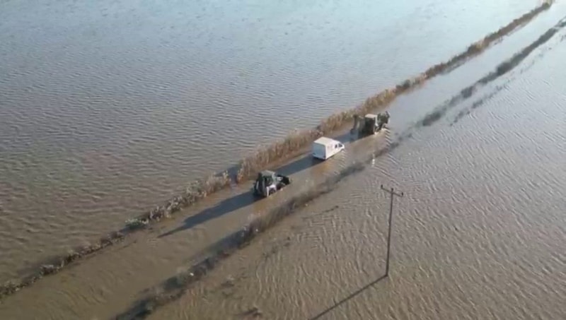 Öte yandan, taşkın nedeniyle binlerce dönüm ekili tarım arazisi de sular altında kaldı.