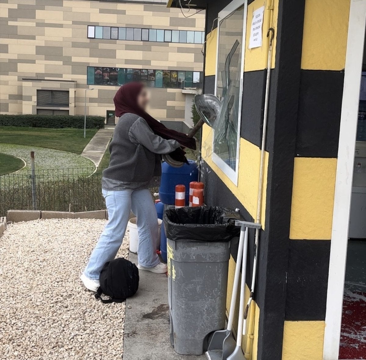 Taksi durağının kahyası, sıradaki araca binmesini söyleyince sinirlenen S.B., durak önündeki ayaklı küllüğü alıp, camları kırdı.