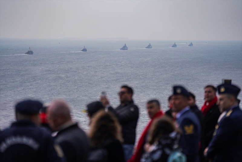 Çanakkale Boğazı’nda demirli bulunan TCG Kınalıada korvetinden 21 pare top atışı yapıldı. Türk Hava Kuvvetleri akrobasi timi “SOLOTÜRK” gösteri uçuşu gerçekleştirdi. Deniz Kuvvetleri Komutanlığı unsurları da Boğaz’da resmi geçit yaptı.