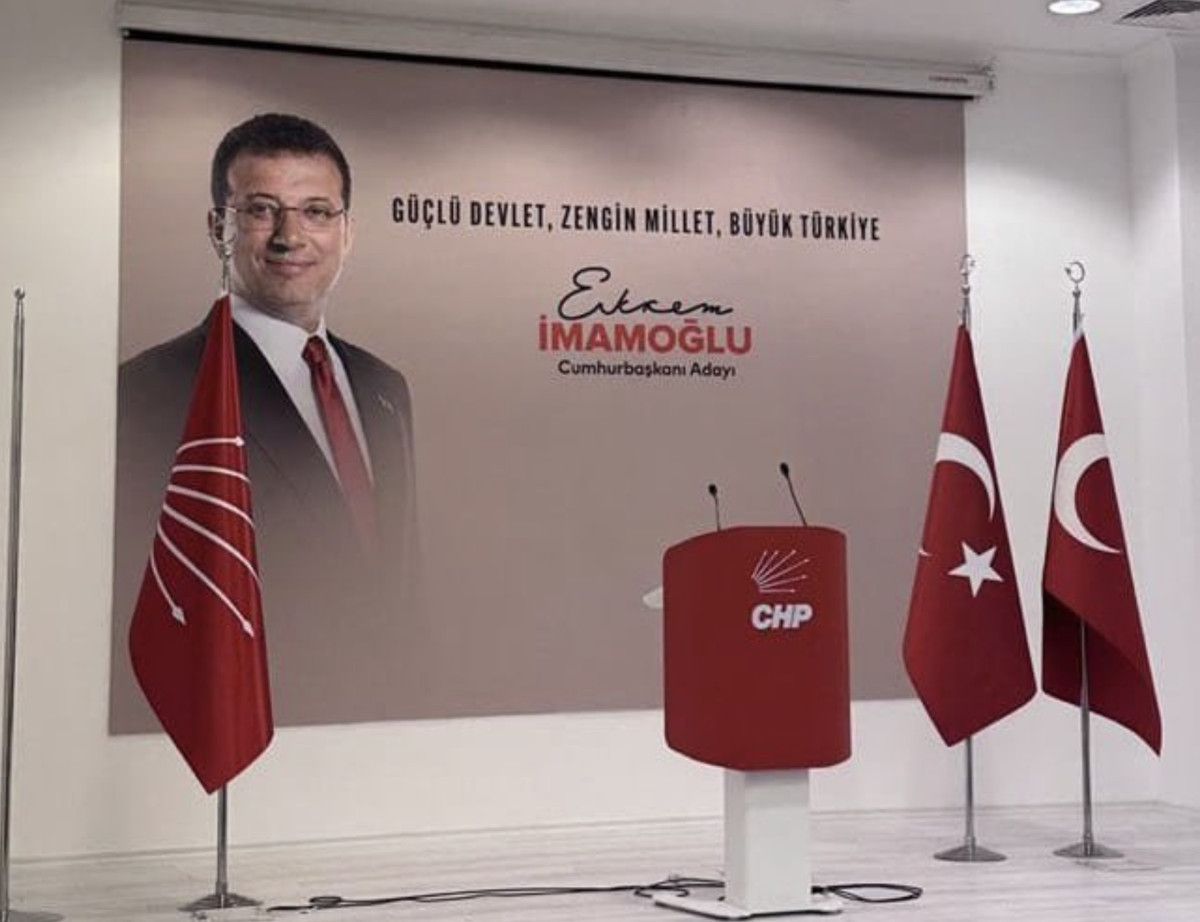 Ofis ilk kurulduğunda İmamoğlu’nun fotoğrafının yer aldığı arka planın kaldırıldığı, yerine yalnızca “Cumhurbaşkanlığı Aday Ofisi” ifadelerinin bulunduğu kırmızı bir fon hazırlandığı görüldü.