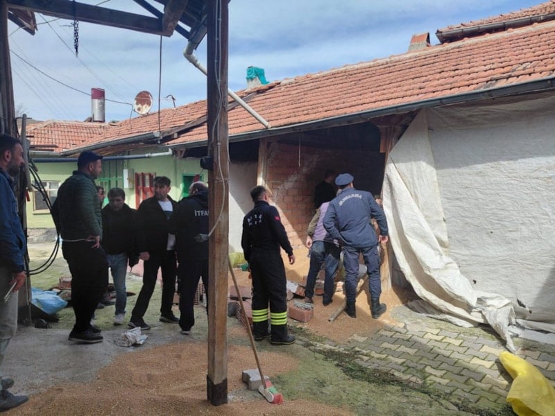 İlçeye bağlı Boğaziçi köyünde Cesur Ö.’ye ait depoda buğday yükleme çalışması yapıldığı sırada duvarın bir bölümü aniden çöktü.