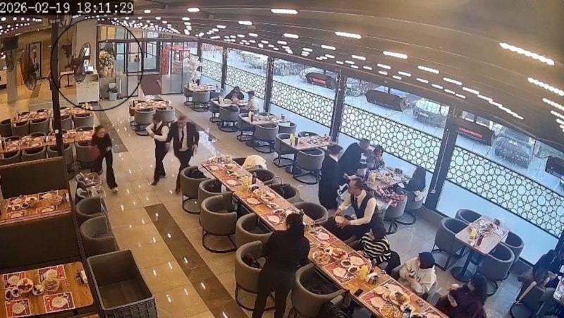 Olay sırasında müşterilerin panikle kaçıştığı anlar da kamera kaydına yansıdı.