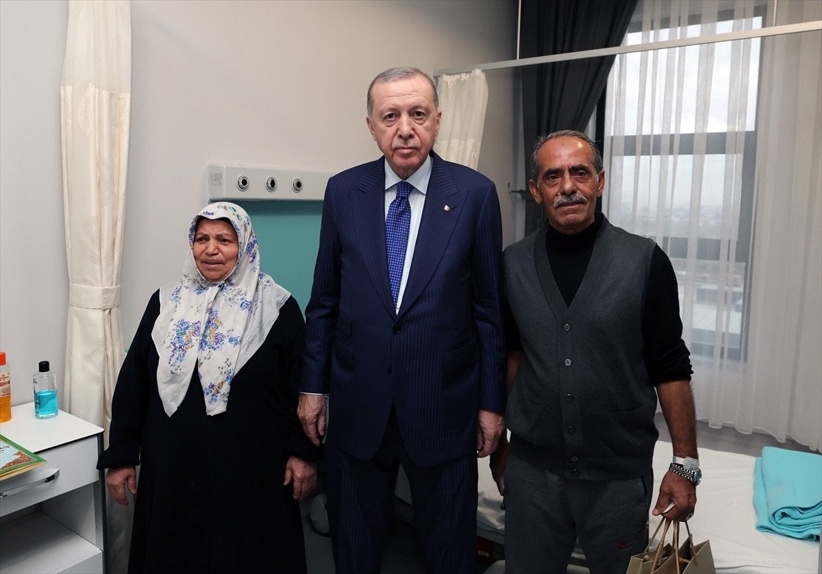Hastaların tek tek durumlarını soran Erdoğan, geçmiş olsun dileklerini iletti.