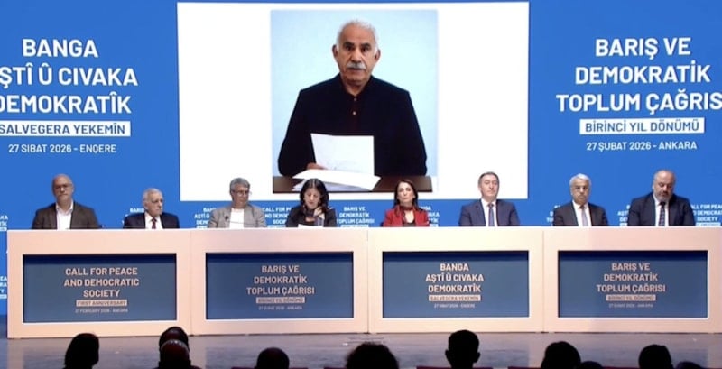 Bu fesih çağrısı yıldönümünde Öcalan, bir yazılı mesaj daha paylaştı. DEM Parti İmarı heyetinden Pervin Buldan’ın okuduğu mesajda Öcalan’ın demokratik siyaset vurgudu ön plana çıktı.