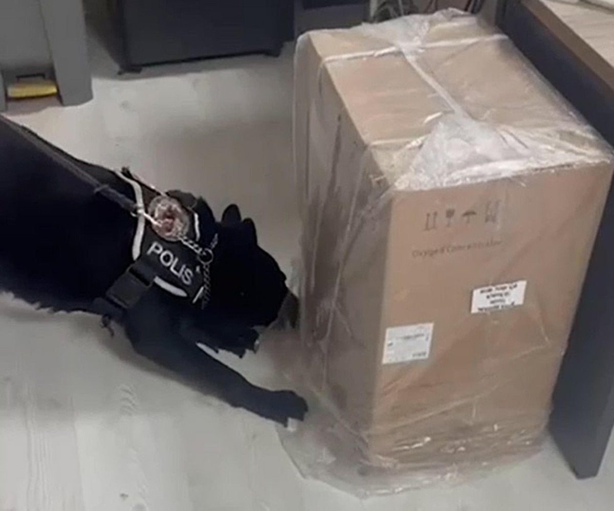 Bir kargo firması aracılığıyla gönderilen kutuyu ele geçirmek için yapılan operasyonda, özel eğitimli narkotik köpeği de kullanıldı.