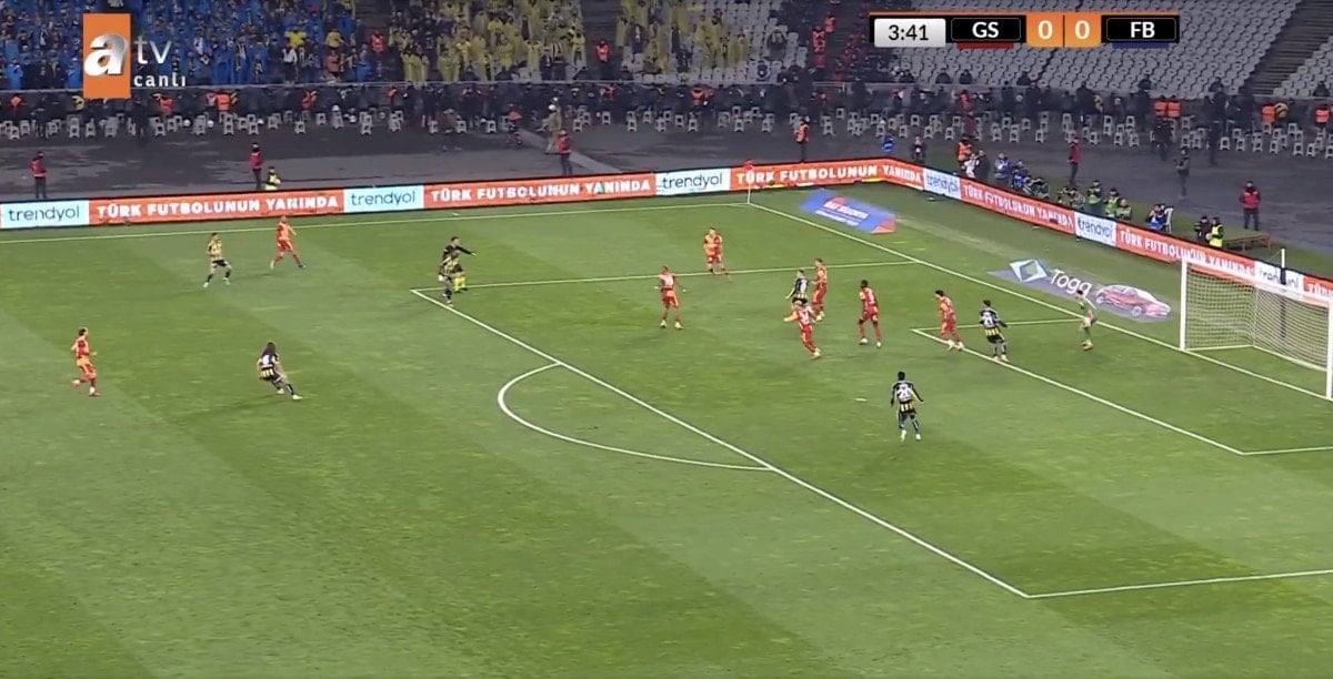 Karşılaşmanın 4. dakikasında Galatasaray’da Abdülkerim Bardakcı, savunmadan topu çıkartmak isterken top Mario Lemina’dan döndü.