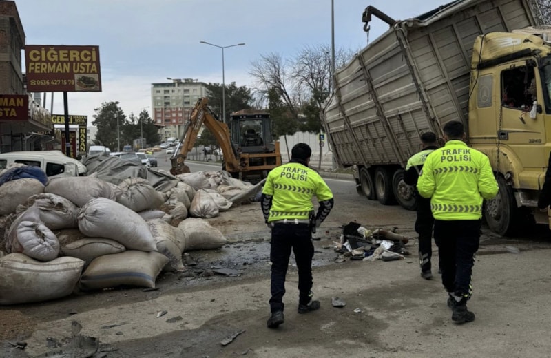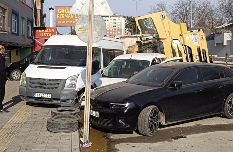 Diyarbakır’da kamyon park halindeki araçların üzerine devrildi